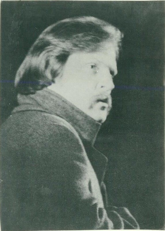 Jānis Jurkāns Klusā lomā Leona Paegles lugas "Iela" uzvedumā Latvijas PSR Andreja Upīša Akadēmiskajā drāmas teātrī (tagad Latvijas Nacionālais teātris).