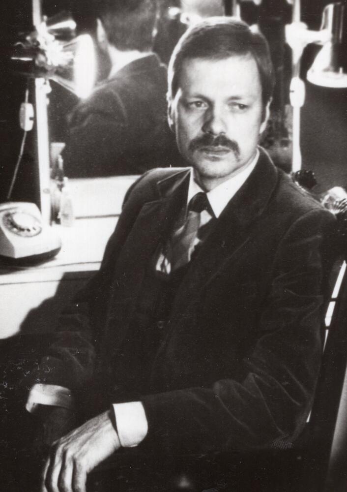 Latvijas PSR Andreja Upīša Akadēmiskajā drāmas teātra (tagad Latvijas Nacionālais teātris) aktieris un režisors Edmunds Freibergs. Portrets.