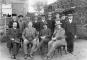 Dzelzceļa tiltu celtniecības pārvaldes darbinieki kādas stacijas pagalmā. Grupas foto.