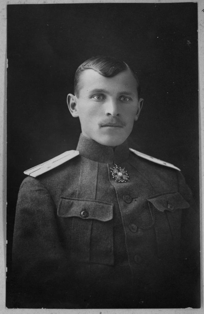 Krievijas impērijas armijas poručiks Krišs Graudiņš, vēlāk latviešu strēlnieku virsnieks, apbalvots ar Svētā Staņislava ordeni. Portrets.