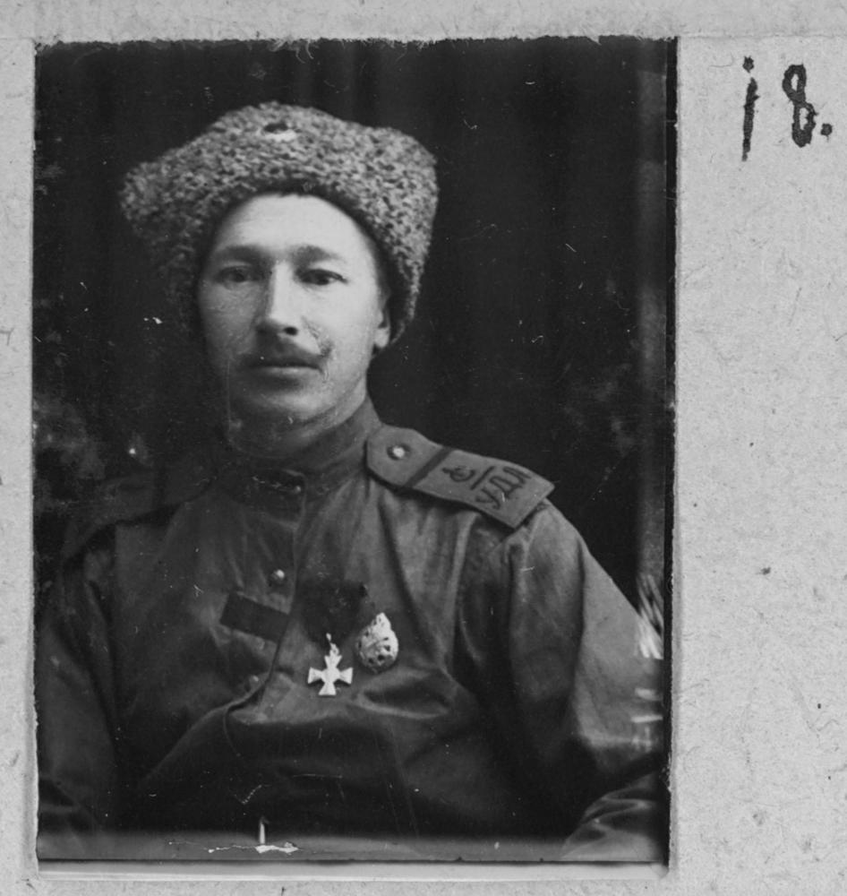 Krievijas impērijas armijas Latviešu strēlnieku bataljona vecākais apakšvirsnieks Pēteris Sproģis Jāņa dēls (dzimis Rīgas apriņķī Doles pagastā, laivenieks), kritis kaujā pie Slokas 1916. gada 22. oktobrī 28 gadu vecumā. Portrets.