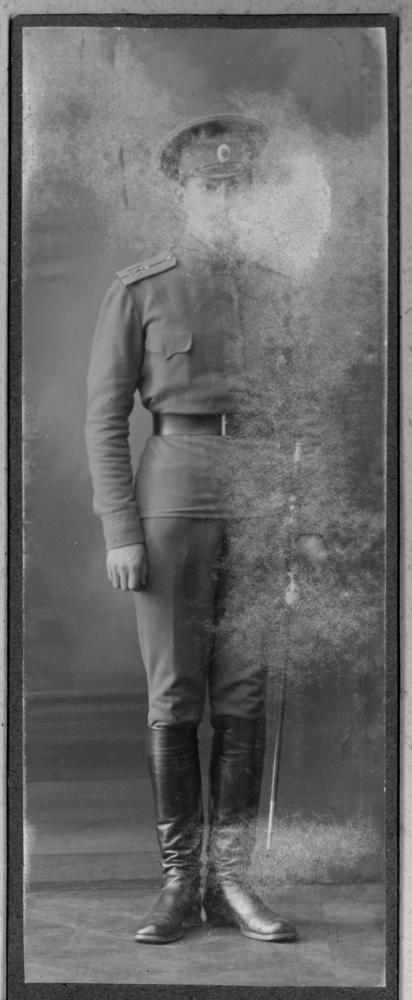 Krievijas impērijas armijas Latviešu strēlnieku rezerves bataljona praporščiks Alberts Rutkis Jura dēls (dzimis 1884 vai 1881 (?). gads (?) marts Kārslbādē (tagad Melluži), Rīgas Jūrmalā) - Latviešu strēlnieku rezerves bataljona strēlnieks, dienestā no 1915. gada 16. novembra. Portrets.