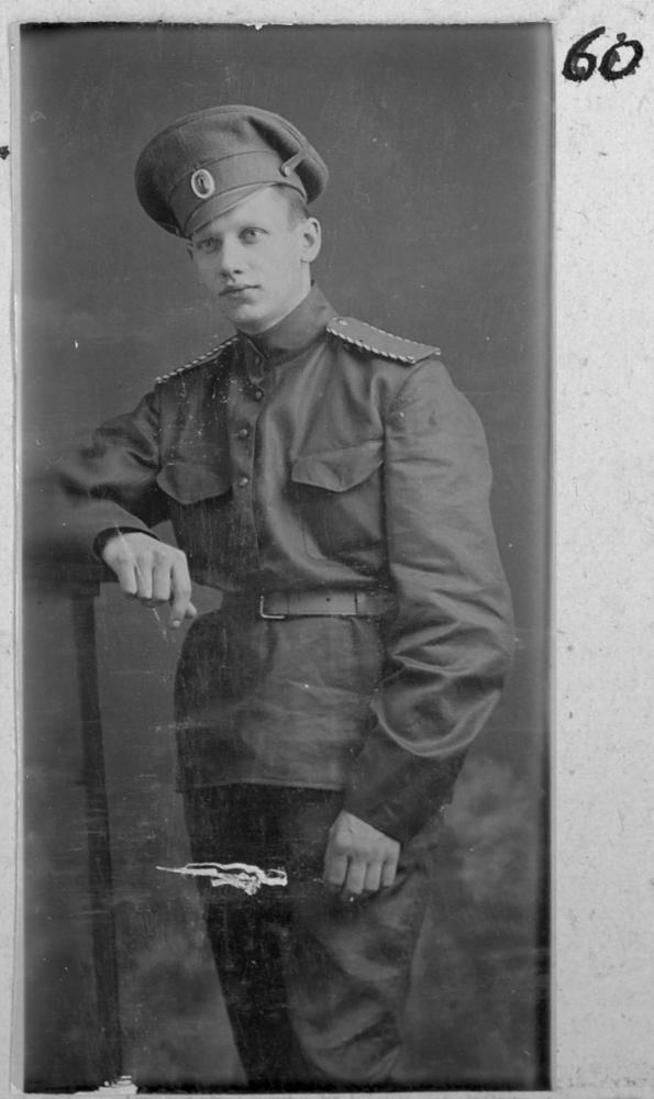 Krievijas impērijas armijas 1. Daugavgrīvas latviešu strēlnieku bataljona strēlnieks Jānis (Johans) Rozenbahs Friča dēls (dzimis Rīgā). Studējis Rīgas politehniskajā institūtā. Kritis Pirmā pasaules kara kaujās pie Slokas 1915. gada 26. oktobrī. Portrets.