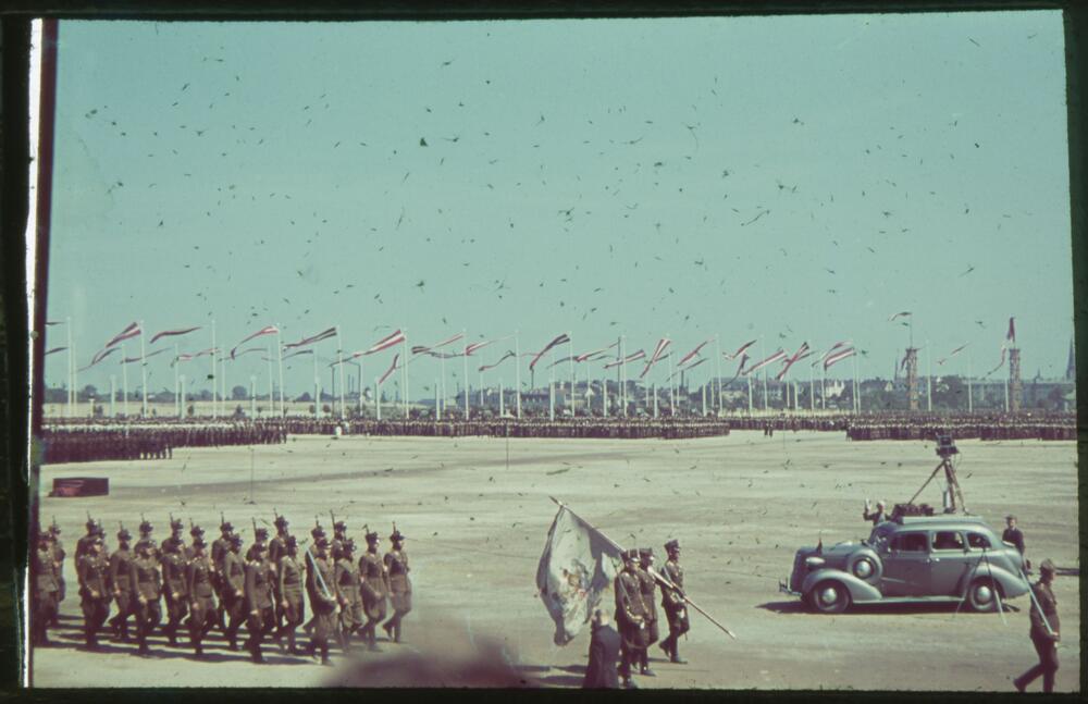 Latvijas Aizsargu organizācijas 20 gadu jubilejas svinību parāde Uzvaras laukumā. Parādes gājienā 16. Jelgavas aizsargu pulks.