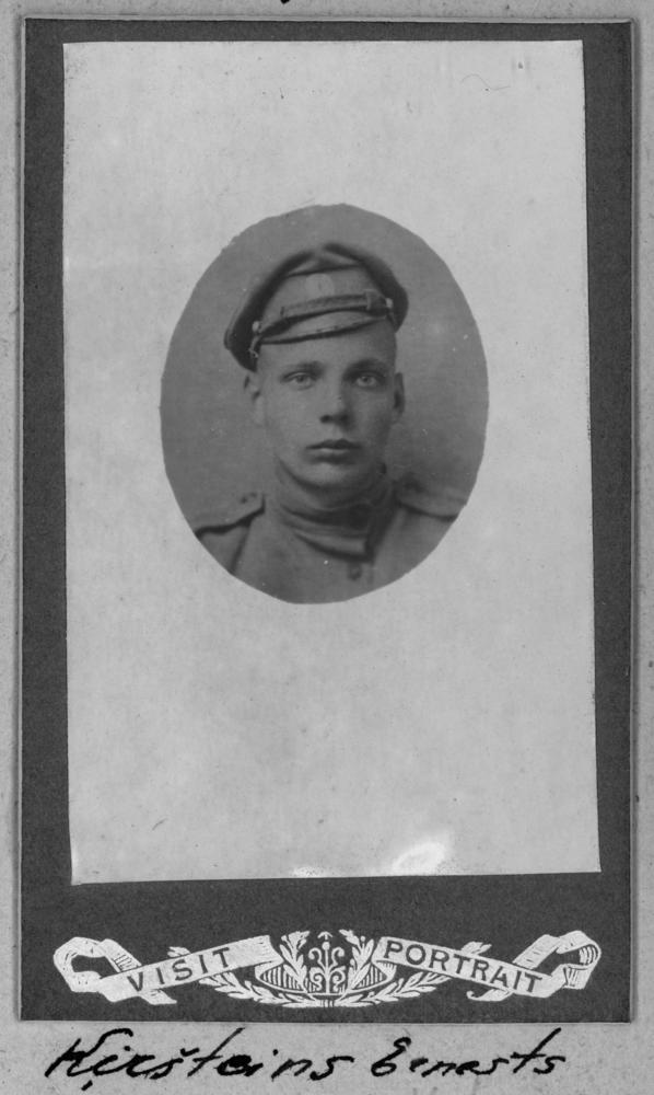 Krievijas impērijas armijas 1. Daugavgrīvas latviešu strēlnieku bataljona strēlnieks Ernests Kiršteins Voldemāra dēls. Izglītība - tautskolas, amats - akmeņu drukātājs. Kritis kaujās 1916. gada 14. decembrī 19 gadu un 6 mēnešu vecumā, apglabāts Rīgas Brāļu kapos (?). Portrets.