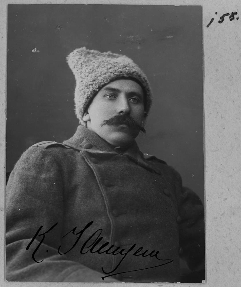 Krievijas impērijas armijas latviešu strēlnieku bataljona praporščiks. Portrets.