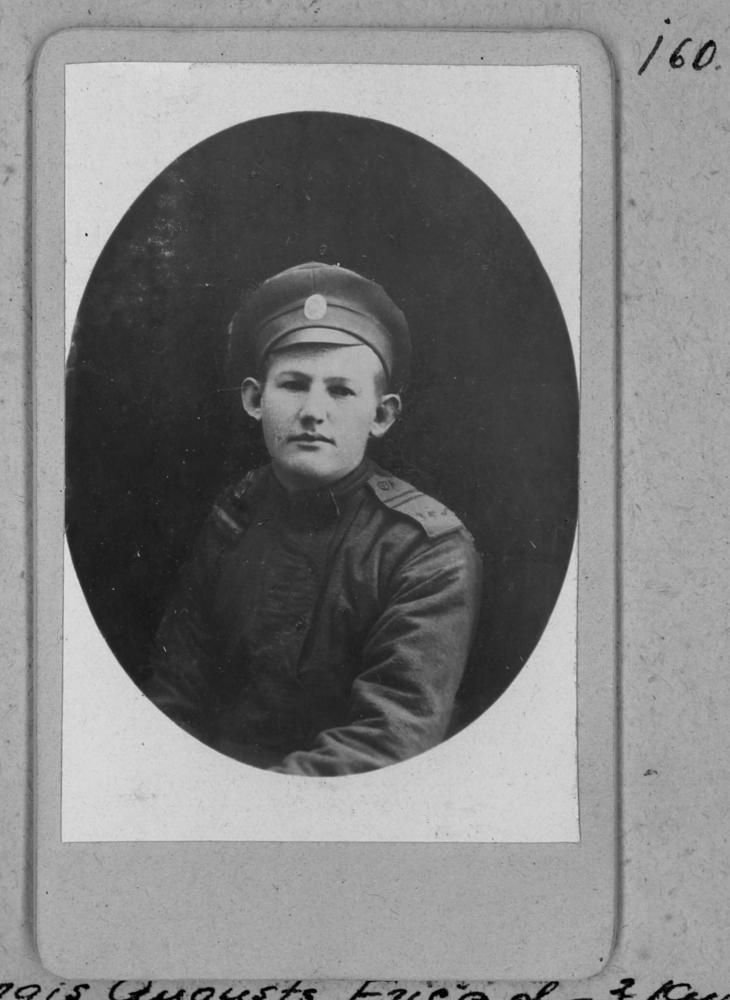Krievijas impērijas armijas 3. Kurzemes latviešu strēlnieku bataljona strēlnieks Augusts Grīnbergs Friča dēls. Dienestā pieteicās brīvprātīgi. Izglītība - pamatskolas. Ievainots kaujās pie Slokas 1915. gada 16. septembrī kājas stilba kaulā. 1915. gada maijā piedzīvoja gāzes uzbrukumu Nāves salā. Krita kaujā 1916. gada 15. jūlijā 19 gadu vecumā un apglabāts Rīgas Brāļu kapos. Apbalvots ar 4. šķiras Svētā Jura krustu. Portrets.