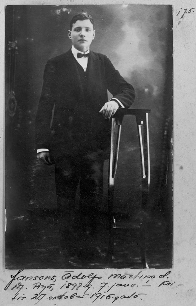 Krievijas impērijas armijas latviešu strēlnieku bataljona Ādolfs Jansons Mārtiņa dēls (dzimis 1897. gada 7. janvārī Rīgā). Kritis kaujā 1915. gada 27. oktobrī. Portrets.