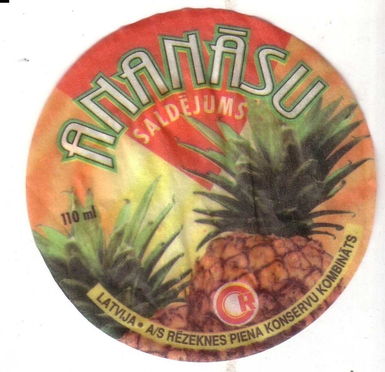 Etiķete A/S "Rēzeknes piena kombināta" ananāsu saldējumam. Daudzums 110 mililitri