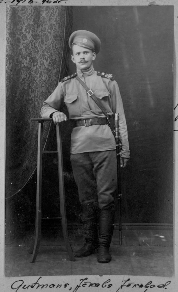 Krievijas impērijas armijas 1. Daugavgrīvas latviešu strēlnieku bataljona strēlnieks Jēkabs Gūtmanis Jēkaba dēls (dzimis 1893. gada 2. decembrī Bauskas apriņķī, Jelgavas pagastā) . Miris no kaujā pie Ķekavas gūtajiem ievainojumiem 1916. gada 9. jūlijā Pirmajā Jura slimnīcā. Apglabāts Rīgas Brāļu kapos. Portrets.