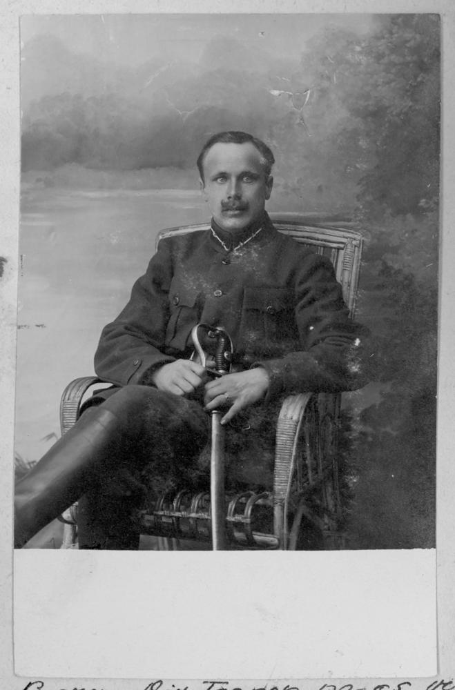 Latvijas armijas Kurzemes divīzijas Transporta daļas priekšnieks, vēlāk Latvijas armijas Atsevišķajā Jātnieku nodaļas virsnieks, virsleitnants Žanis Kreidermans. Portrets.