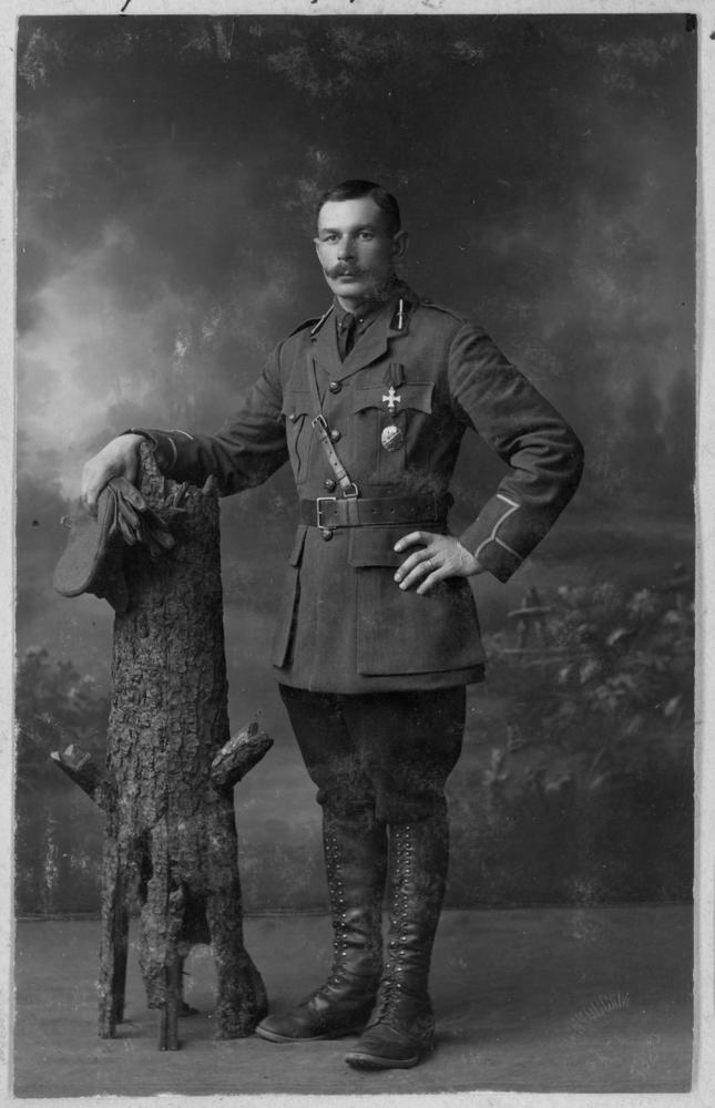 Latvijas armijas leitnants, bijušais latviešu strēlnieks, kas bija apbalvots ar Svētā Jura krustu. Portrets.