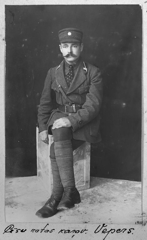 Latvijas armijas Cēsu rotas seržants Andrejs Vērpels (?) (Vepers), dzimis 1893. gada 1. janvārī Madonas apriņķa Ļaudonas pagastā (?). Portrets.