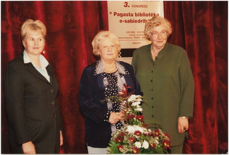 [Dzintra Mukāne, Anna Mauliņa un Silvija Liniņa Latvijas pagastu bibliotekāru 3. kongresā]