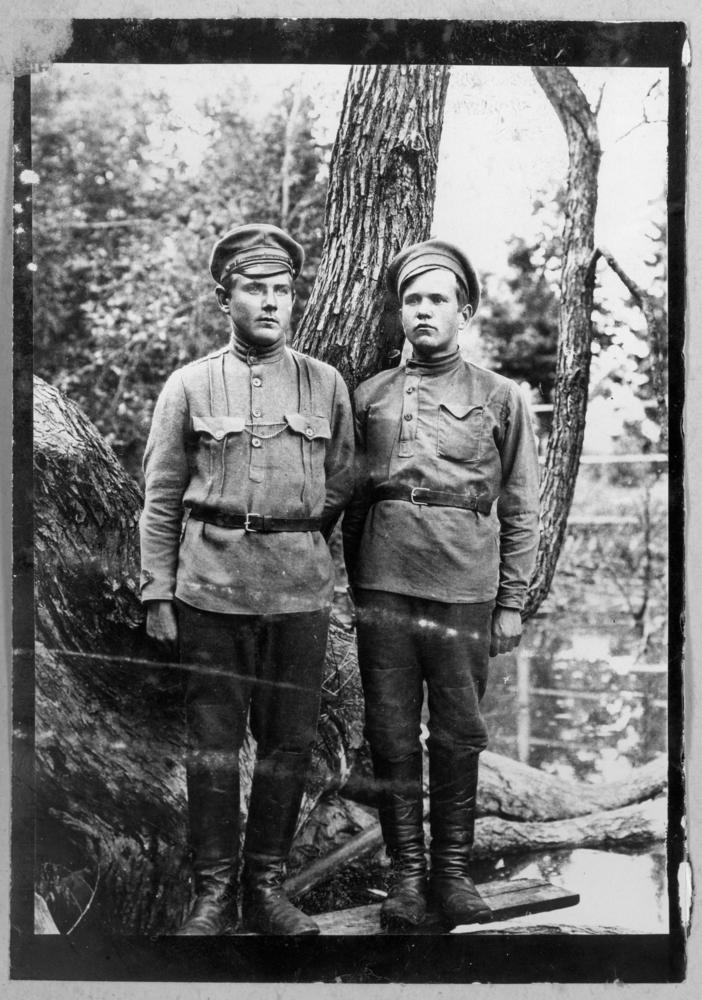 Latvijas armijas kareivji. Dubultportrets dabā.