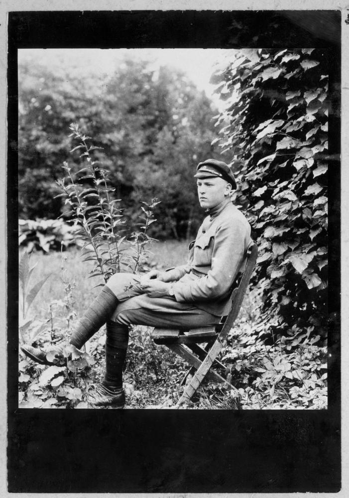 Latvijas armijas kareivis. Portrets dabā.