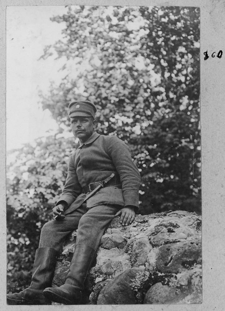 Latvijas armijas kareivis. Portrets dabā.