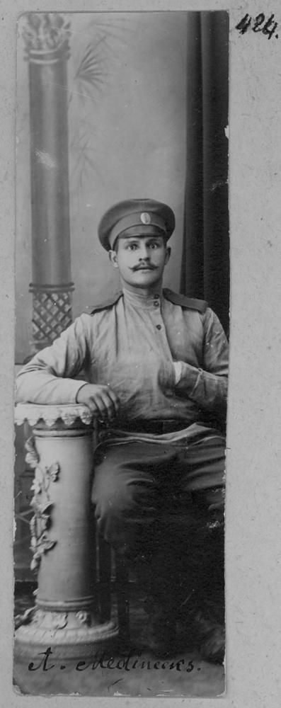 Krievijas impērijas armijas latviešu strēlnieks A. Mednieks. Portrets studijā.