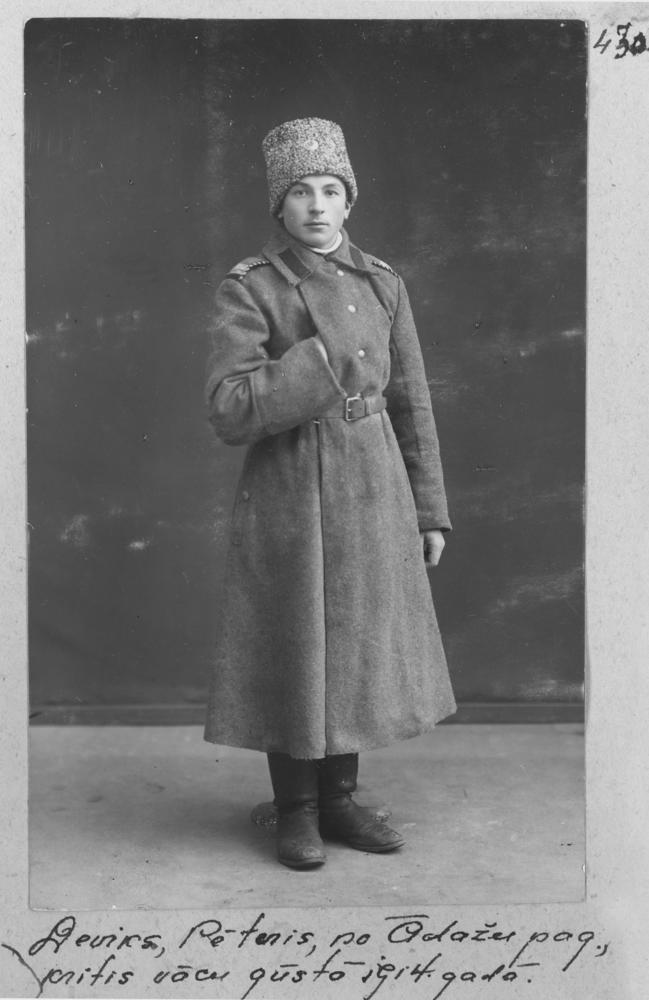 Krievijas impērijas armijas karavīrs Pēteris Deviks, dzimis Ādažu pagastā, Pirmā pasaules kara sākumā kritis vācu gūstā. Portrets.