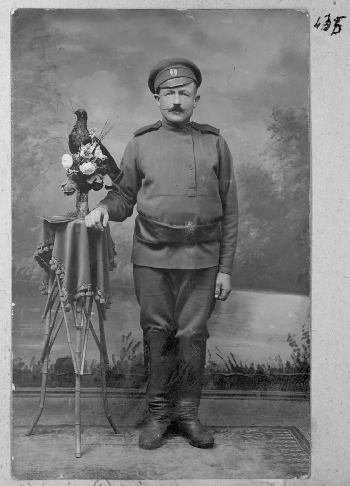Krievijas armijas karavīrs Pēteris Deviks (?), kas Pirmā pasaules kara sākumā nonāca vācu gūstā un atradās Vācijas pilsētā Kaselē. Portrets.