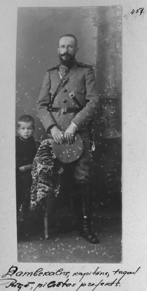 Krievijas impērijas armijas virsnieks Jānis Dambekalns, piedalījās Brīvības cīņās un apbalvots ar Triju zvaigžņu ordeni un Viestura ordeni. Pirmais Rīgas prefekts no 1919. gada līdz 1924. gada. Dubultportrets.