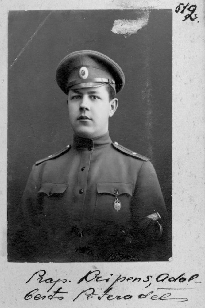 Krievijas impērijas armijas 1. Daugavgrīvas latviešu strēlnieku bataljona praporščiks Adalberts Krīpēns Pētera dēls. Portrets.
