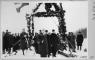 Latvijas Republikas valdības pārstāvji ierodas uz Neatkarības rotas karoga iesvētīšanas pasākumu caur goda vārtiem.
