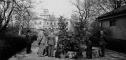 Latvijas Valsts un Ministru prezidents Kārlis Ulmanis apskata Rīgas pils dārzu pēc labiekārtošanas darbu veikšanas. Pie pils strūklakas baseina no kreisās: 1. Valsts prezidenta sekretārs (1922-1940) un Rīgas pils pārbūves komisijas loceklis Jānis Grandaus, 2. Kārlis Ulmanis, 4. Valsts prezidenta adjutants pulkvežleitnants Miervaldis Lūkins, 5. Rīgas pils komandants (1936-1940), pulkvedis, dzejnieks (pseidonīmi Rūdis, Raimonds) Raimonds Bebris. Fonā ēka (tagad) Krišjāņa Valdemāra iela 1A - Iekšlietu ministrijas Iekšējās drošības birojs.