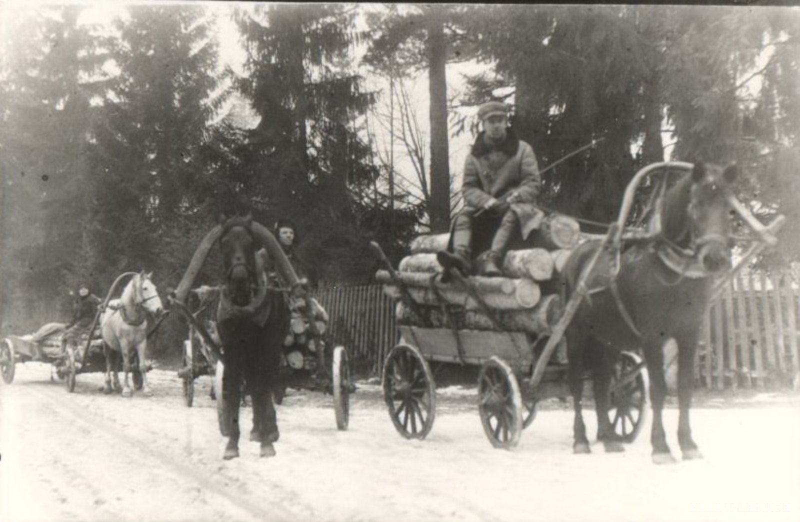Malkas vedēji pie Vadakstes pagasta Priedulas ciema Bajāriem 20. gadsimta 20.gadu beigās. Vasiļa foto
