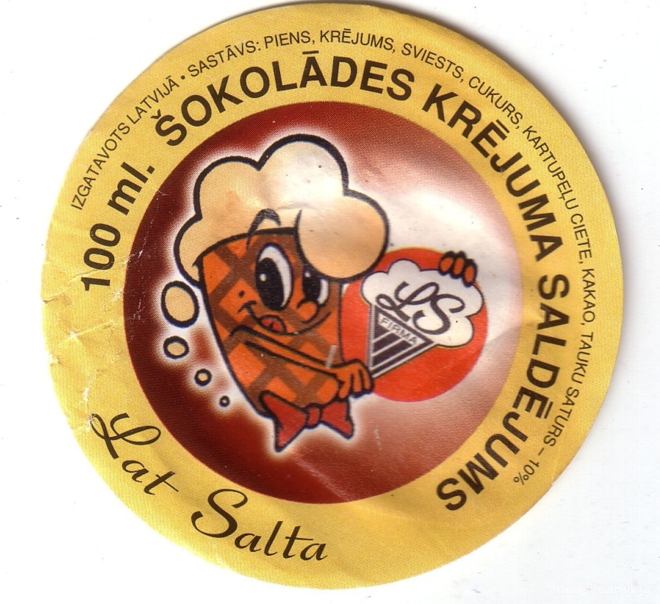 Etiķete šokolādes krējuma saldējumam. Ražotājs "Lat Salta". Saldējuma daudzums 100 mililitri