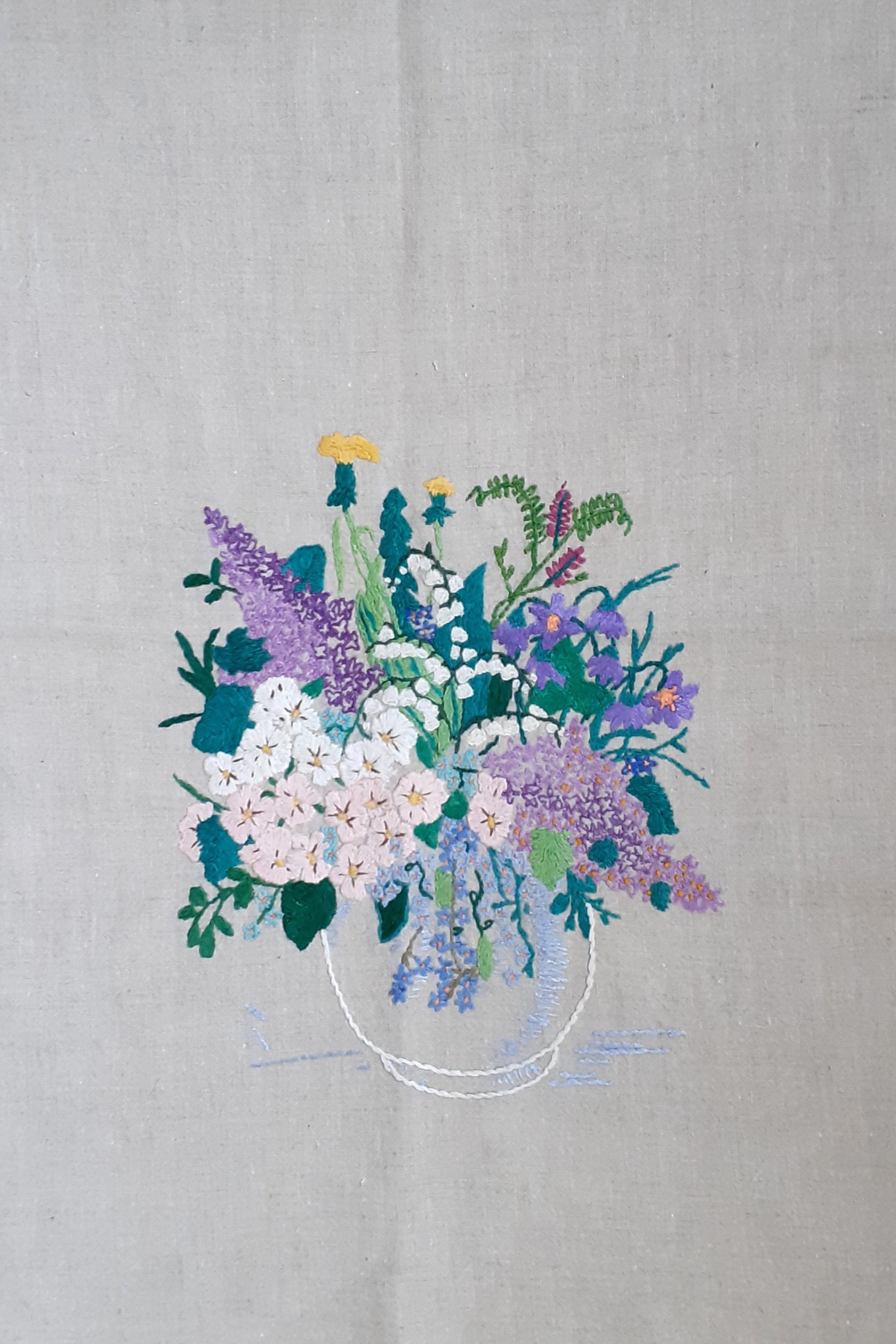 Kad piedzima mana meita, no vīramātes es saņēmu dāvanā arī izšuvumu “Buķete”.