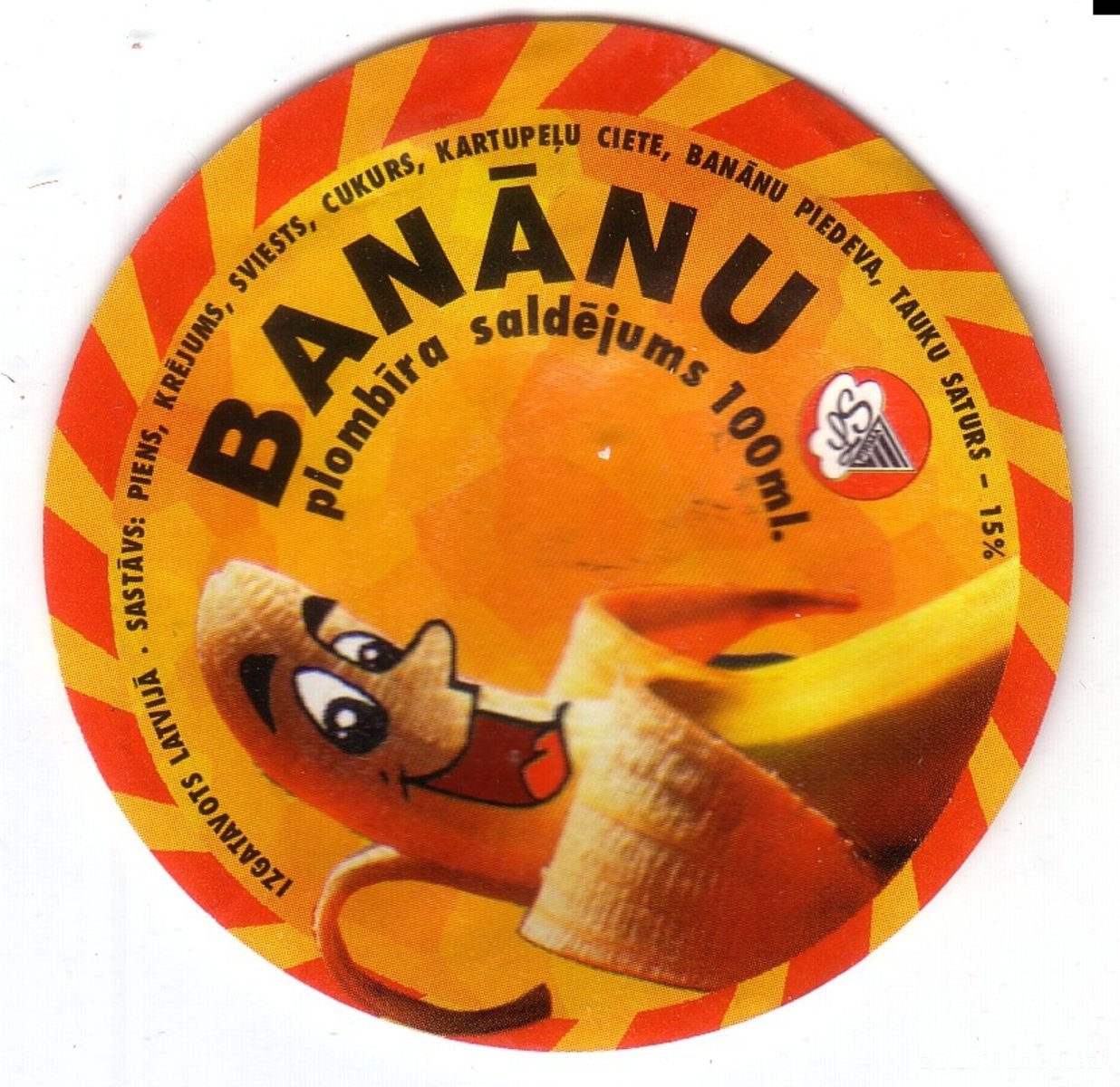 Etiķete banānu plombīra saldējumam. Ražotājs „Lat Salta”. Saldējuma daudzums 100 mililitri