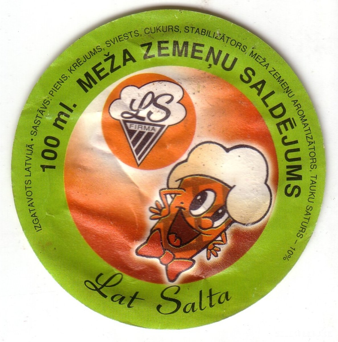 Etiķete meža zemeņu saldējumam. Ražotājs „Lat Salta”. Saldējuma daudzums 100 mililitri