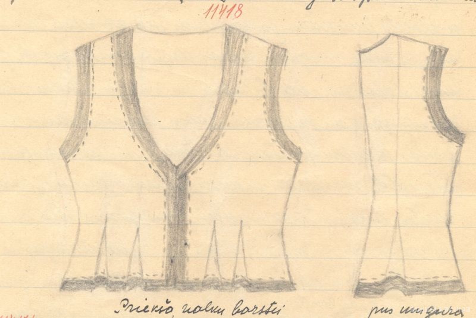 Barstes piegrieztnes paraugs. Barste darināta Jelgavas apriņķa Vircavas pagastā 1930. gadā. Tagad Jelgavas novada Vircavas pagasts