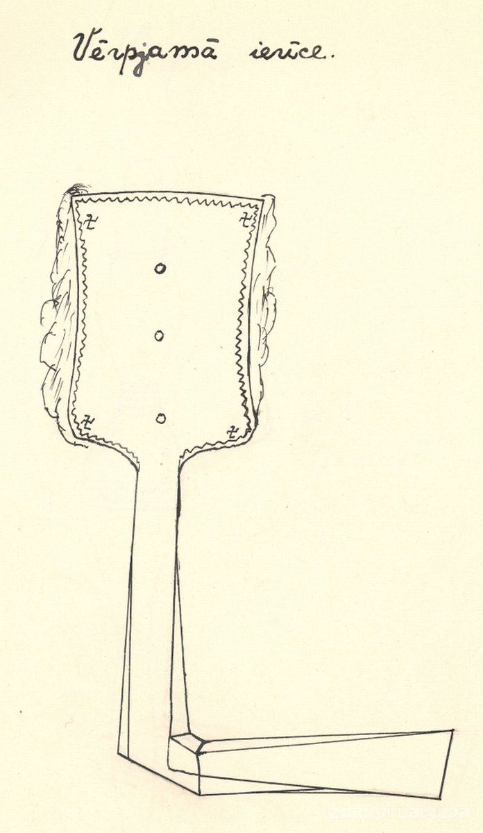 Vērpjamā ierīce zīmēta 1937. gadā un iesniegtas Latvijas Universitātes Literatūras, folkloras un mākslas institūtam no Daugavpils