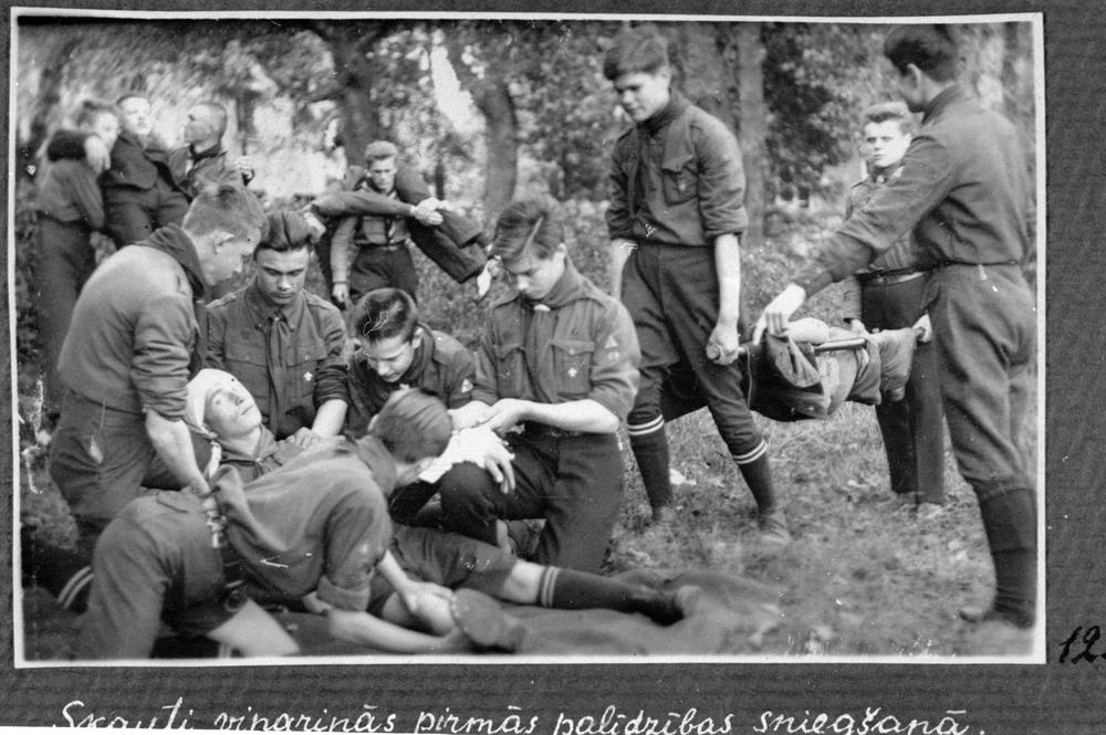 Latvijas Skautu centrālās organizācijas (LSCO) 69. Valmieras kurlmēmo skautu pulciņš vingrinās pirmās palīdzības sniegšanā lauka apstākļos.