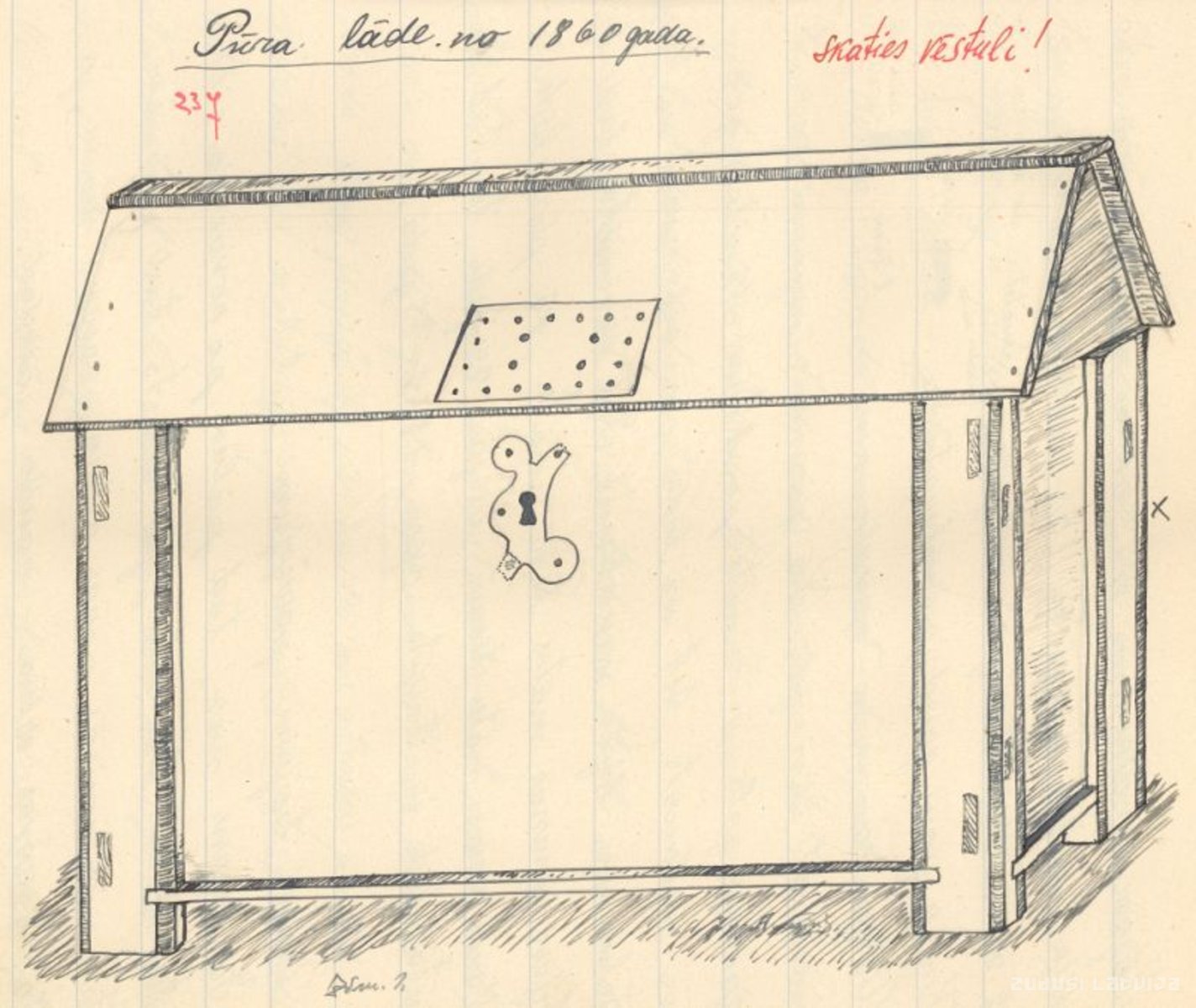 Pūra lāde zīmēta 1931. gadā Alūksnes apriņķa Alsviķos. Tagad Alūksnes novada Alsviķu pagasts