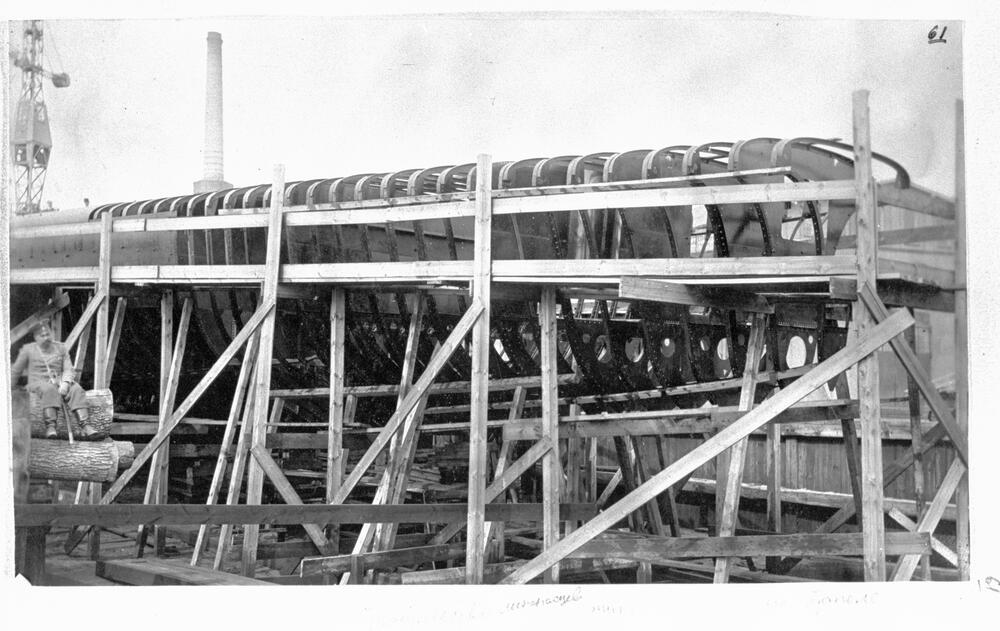 Kuģa, kuru paredzēts aprīkot ar mīnmetējiem, būvniecība "Cīzes kuģu būvētavā" ("Ziese Mühlgraben-Werft", saukta arī "F. Šichau Mīlgrāvja kuģu būvētava"). Kuģu būvētavu 1913. gadā izveidoja Karls Henrihs Cīze (Carl Heinrich Ziese) kā Vācijas kuģu būvētavas "Schichau-Werke" meitas uzņēmumu ar mērķi piekļūt Krievijas Impērijas ieroču tirgum būvējot galvenokārt karakuģus. 1915. gadā kuģu būvētava tika atsavināta un nonāca tiešā Krievijas Impērijas pārraudzībā. Pēc Latvijas Republikas neatkarības proklamēšanas 1925. gada 11. maijā uz statūtu pamata, pārņemot Cīzes kuģu būvētavas uzņēmumu ar visu tam piederošo nekustamu un kustamu mantu, tika izveidota akciju sabiedrība "Mīlgrāvja kuģu būvētavas un mašīnu fabrika".