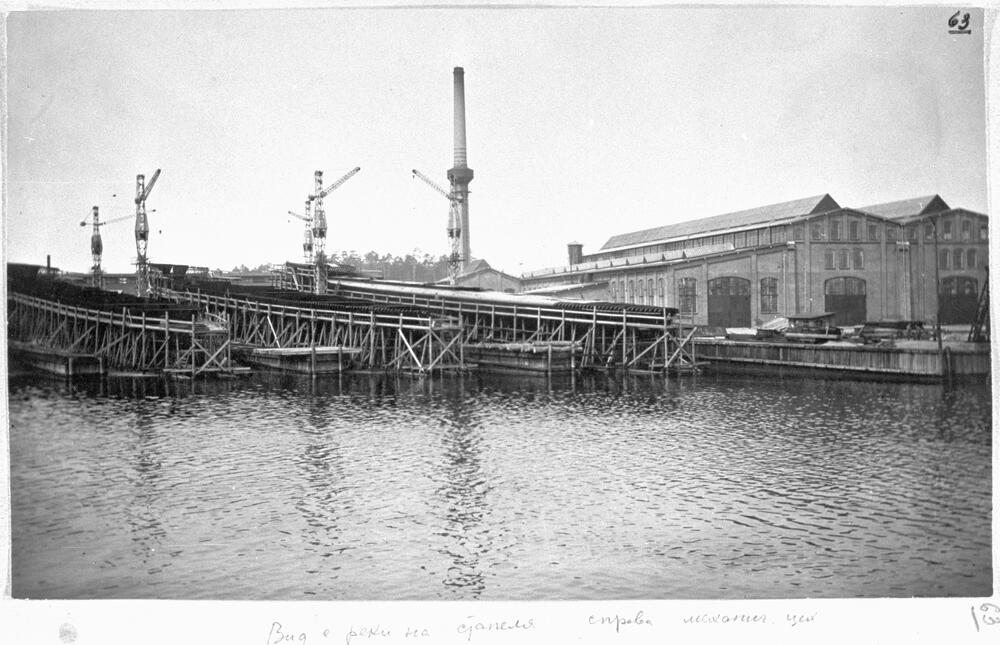 Skats uz "Cīzes kuģu būvētavas" ("Ziese Mühlgraben-Werft", saukta arī "F. Šichau Mīlgrāvja kuģu būvētava") stāpeļiem un mehānisko cehu. Kuģu būvētavu 1913. gadā izveidoja Karls Henrihs Cīze (Carl Heinrich Ziese) kā Vācijas kuģu būvētavas "Schichau-Werke" meitas uzņēmumu ar mērķi piekļūt Krievijas Impērijas ieroču tirgum būvējot galvenokārt karakuģus. 1915. gadā kuģu būvētava tika atsavināta un nonāca tiešā Krievijas Impērijas pārraudzībā. Pēc Latvijas Republikas neatkarības proklamēšanas 1925. gada 11. maijā uz statūtu pamata, pārņemot Cīzes kuģu būvētavas uzņēmumu ar visu tam piederošo nekustamu un kustamu mantu, tika izveidota akciju sabiedrība "Mīlgrāvja kuģu būvētavas un mašīnu fabrika".