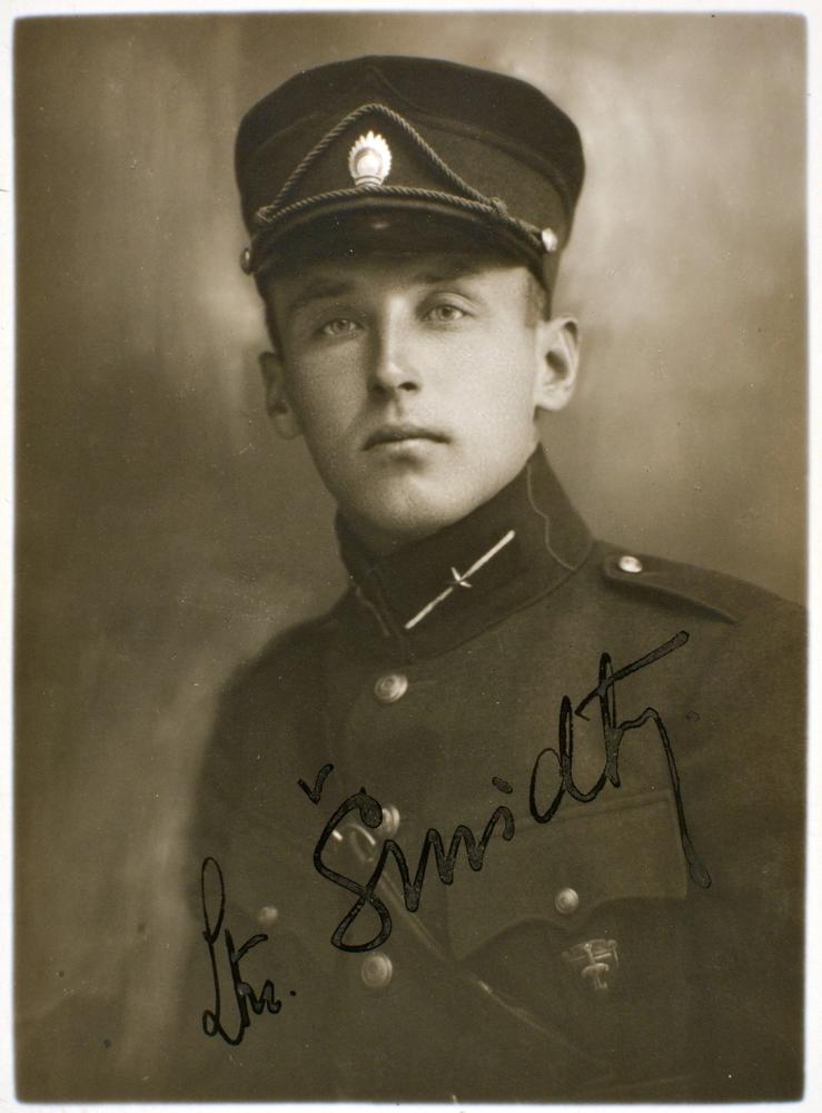 Latvijas armijas Jātnieku pulka leitnants Kārlis Voldemārs Šmidts (Šmits). 1916. gada maijā Latviešu strēlnieku rezerves pulka karavīrs. 1917. gada 20. maijā beidzis Mācības komandu. 1917. gada augustā Zemgales latviešu strēlnieku pulka strēlnieks. 1917. gada oktobrī tika atvaļināts. 1920. gada 15. oktobrī kļūst par Kara skolas Jātnieku nodaļas kadetu. 1921. gada 1. novembrī armijas kaprālis. 1922. gada 1. septembrī, beidzot Kara skolu, paaugstināts leitnanta pakāpē un kļuva par Jātnieku pulka Eskadrona (III) jaunāko virsnieku. 1924. gada 29. februārī kļūst par Mācības eskadrona vada komandieris. 1926. gada 17. novembrī paaugstināts virsleitnanta pakāpē. 1927. gada 13. oktobrī Saimniecības komandas priekšnieks. 1928. gadā apbalvots ar Latvijas brīvības cīņas 10.gadu jubilejas medalu. 1929. gada 23. maijā apbalvots ar Triju Zvaigžņu ordeņa V šķiru. 1929. gada 27. augustā kļūst par Eskadrona (IV) komandiera palīgs. 1929. gada 15. oktobrī Ložmetēju eskadrona komandiera palīgs. 1930. gada 17. novembrī paaugstināts kapteiņa pakāpē. 1936. gadā 22. jūnijā Kancelejas priekšnieks. 1937. gadā beidzis Ložmetēju virsnieku kursus. 1938. gadā beidzis Saimniecības virsnieku kursus. No 1940. līdz 1941. gadā dienē Strēlnieku 24. teritoriālā korpusā. 1940. gada 16. novembrī pārskaitīts uz Kavalērijas 20. pulku, kur bija Finanšu daļas priekšnieks. Miris 1976. gada 14. jūnijā Manheimā, Vācijā. Portrets.