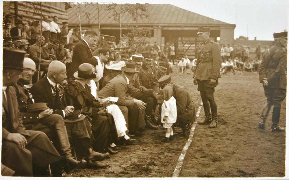 Latvijas armijas Jātnieku pulka pastāvēšanas 5. gadadienas svētku pasākuma viesi un dalībnieki.