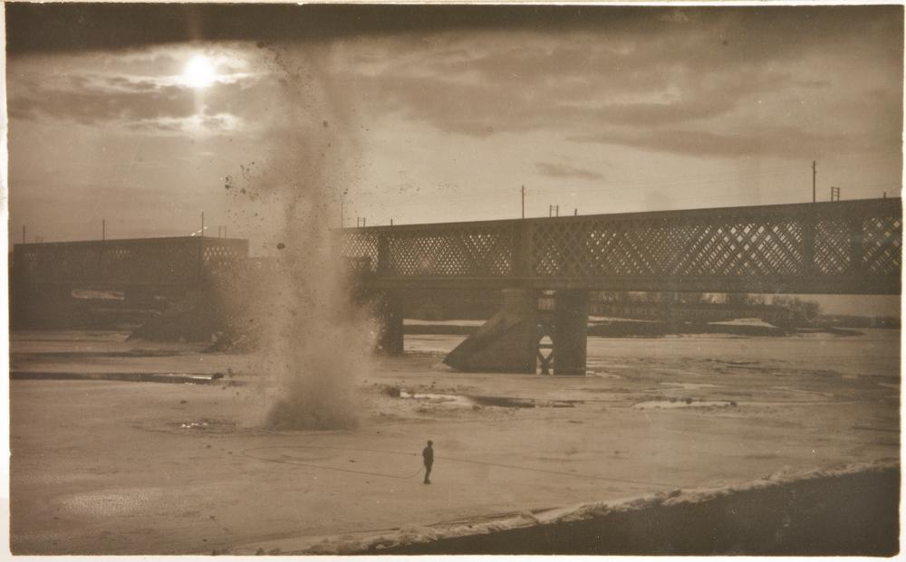 Ledus spridzināšana Daugavā pie Daugavpils dzelzceļa tilta.