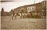 Latvijas armijas Jātnieku pulks parādes laikā Daugavpils pilsētas laukumā. Fonā redzamas ēkas uz kurām atrodas veikalu un darbnīcu izkārtnes.