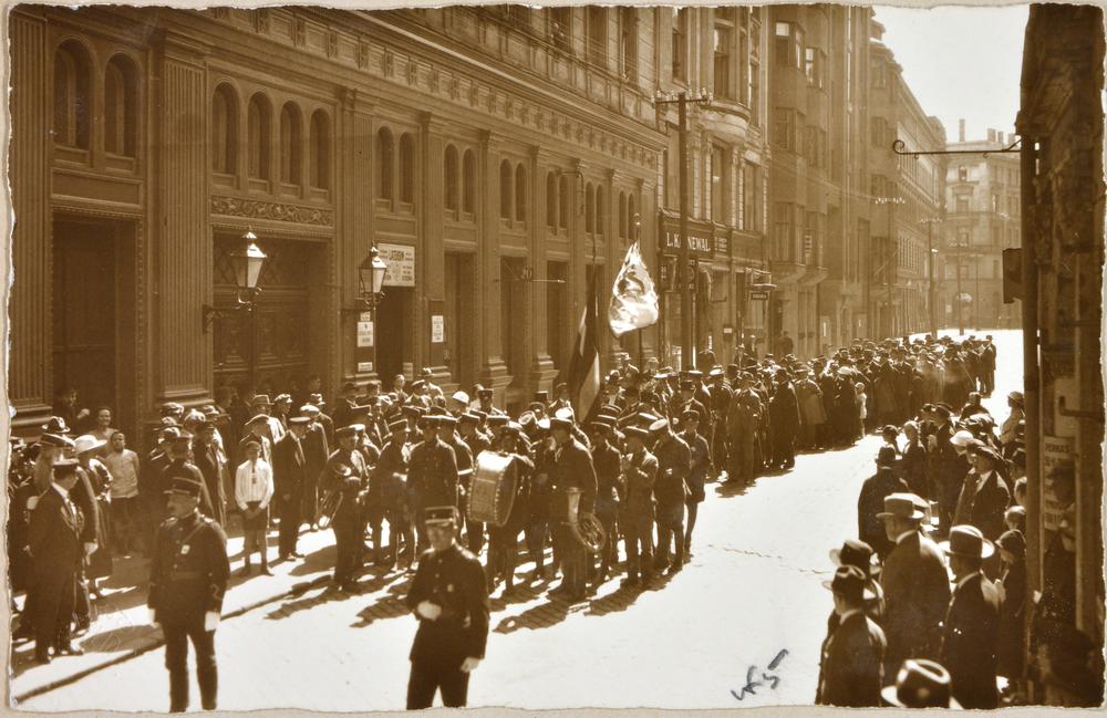 Gājiens gar Latvijas Tirgotāju savienības namu.