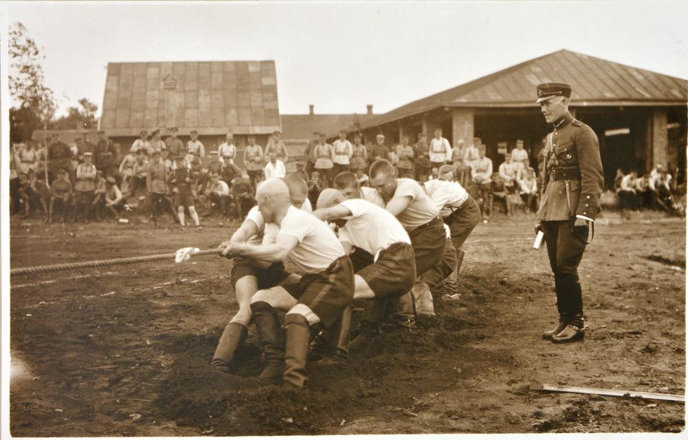 Sacensības virves vilkšanā par godu Latvijas armijas Jātnieku pulka pastāvēšanas 5. gadadienai.