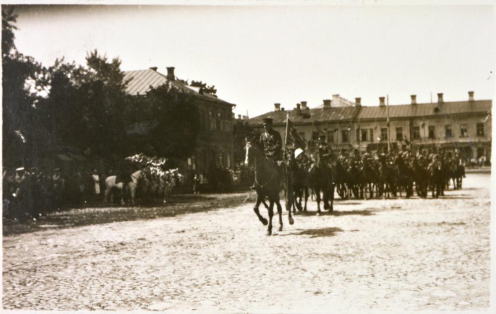 Latvijas armijas Jātnieku pulks parādes laikā.