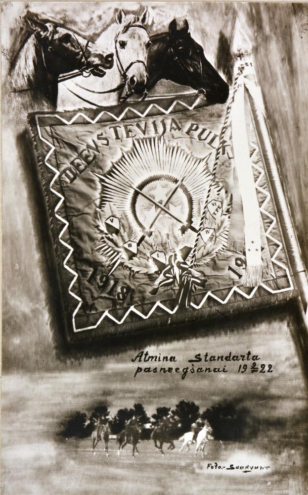 Latvijas armijas Jātnieku pulka standarts. (Fotomontāža).