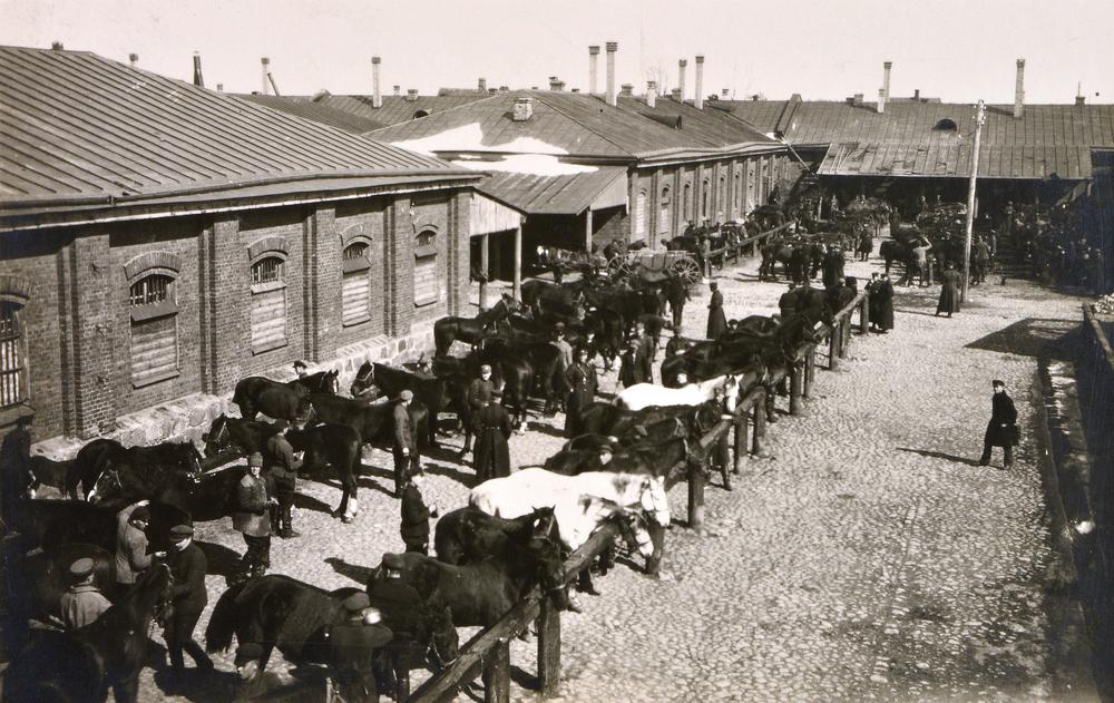 Latvijas armijas Jātnieku pulka 3.eskadrona karavīri tīra zirgus.
