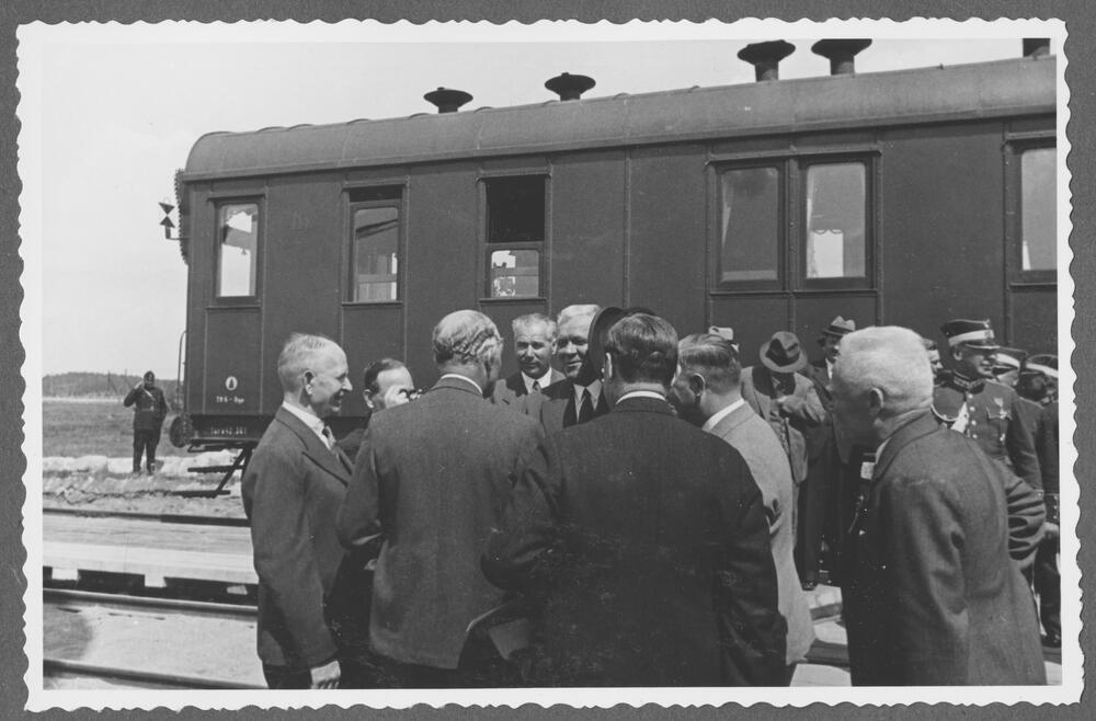 Latvijas Valsts un Ministru prezidenta Kārļa Ulmaņa (centrā) sagaidīšana Ķeguma dzelzceļa satacijā.