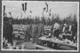 Ķeguma spēkstacijas pamatakmens likšanas svinību azaida galds pasākuma dalībniekiem un goda viesiem, kuru klājušas aizsardzes. Viesi ierodas uz mielastu. Priekšplānā no labās: 1. Latvijas Republikas izglītības ministrs Augusts Tentelis, 2. Latvijas Republikas tieslietu ministrs Hermanis Apsītis.